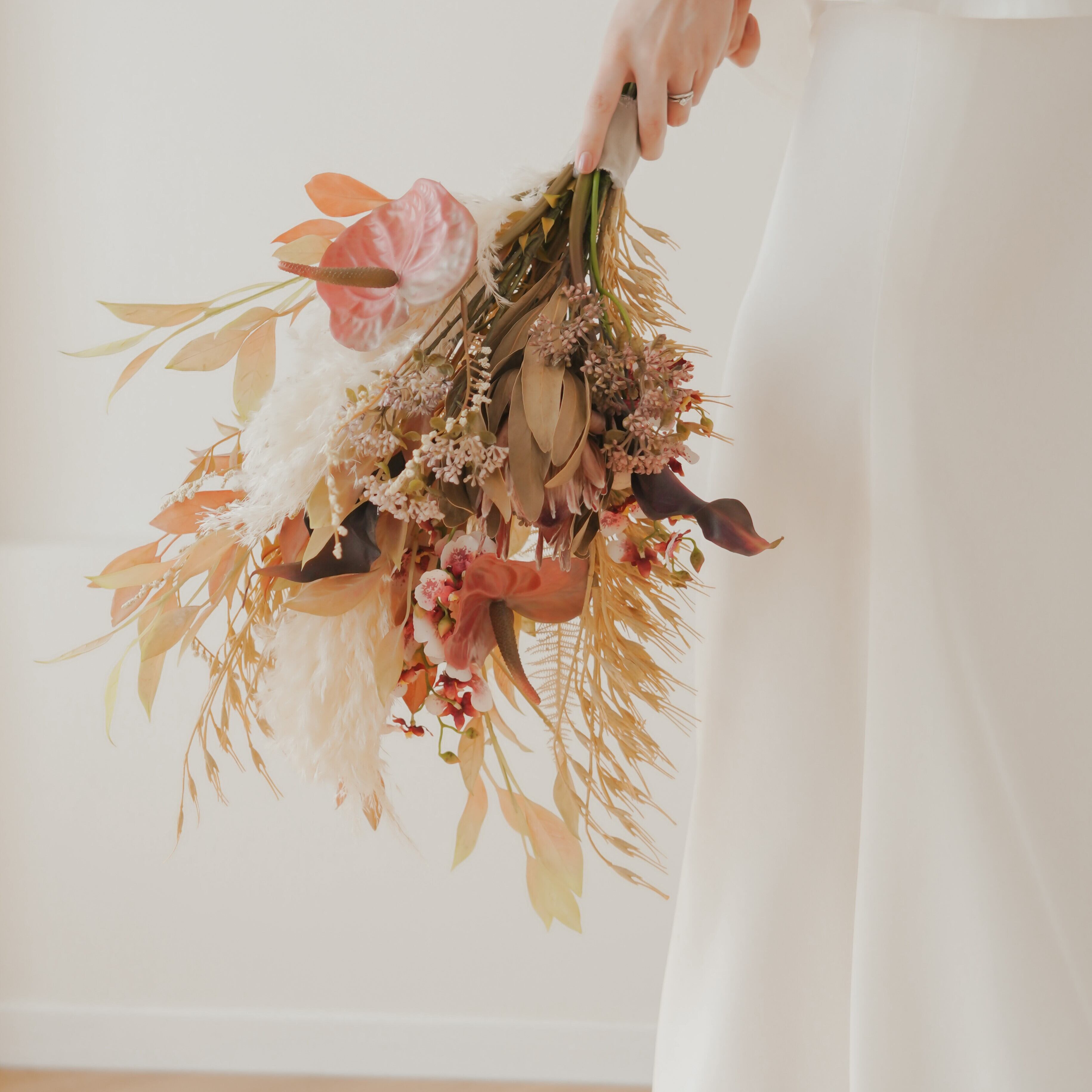 大きいプロテアとパンパスグラスなどを使った、大ぶりのブーケです。
